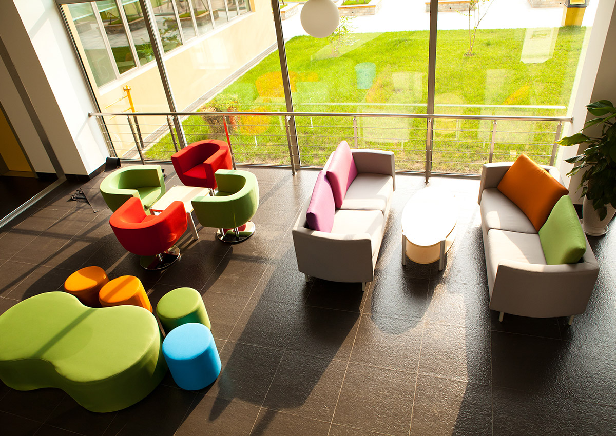 充分考慮了學(xué)生的心里需要,不同幾何造型的軟質(zhì)家具自由組合拼接,有助于激發(fā)孩子的好奇心和學(xué)習興趣;豐富且鮮艷的色彩搭配適合孩子們玩耍和放松。