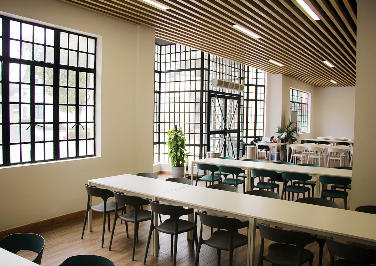 坐落于上海松江佘山腳下,通過(guò)空間設計為隨時(shí)隨地發(fā)生的學(xué)習活動(dòng)創(chuàng )造條件,非正式學(xué)習空間的巧妙布局、搞空間的利用率同時(shí)也為學(xué)習空間帶來(lái)一份巧妙的重構性五感設計:光線(xiàn)、色彩、燈光、音質(zhì)、氣味都影響著(zhù)學(xué)生們的質(zhì)量。